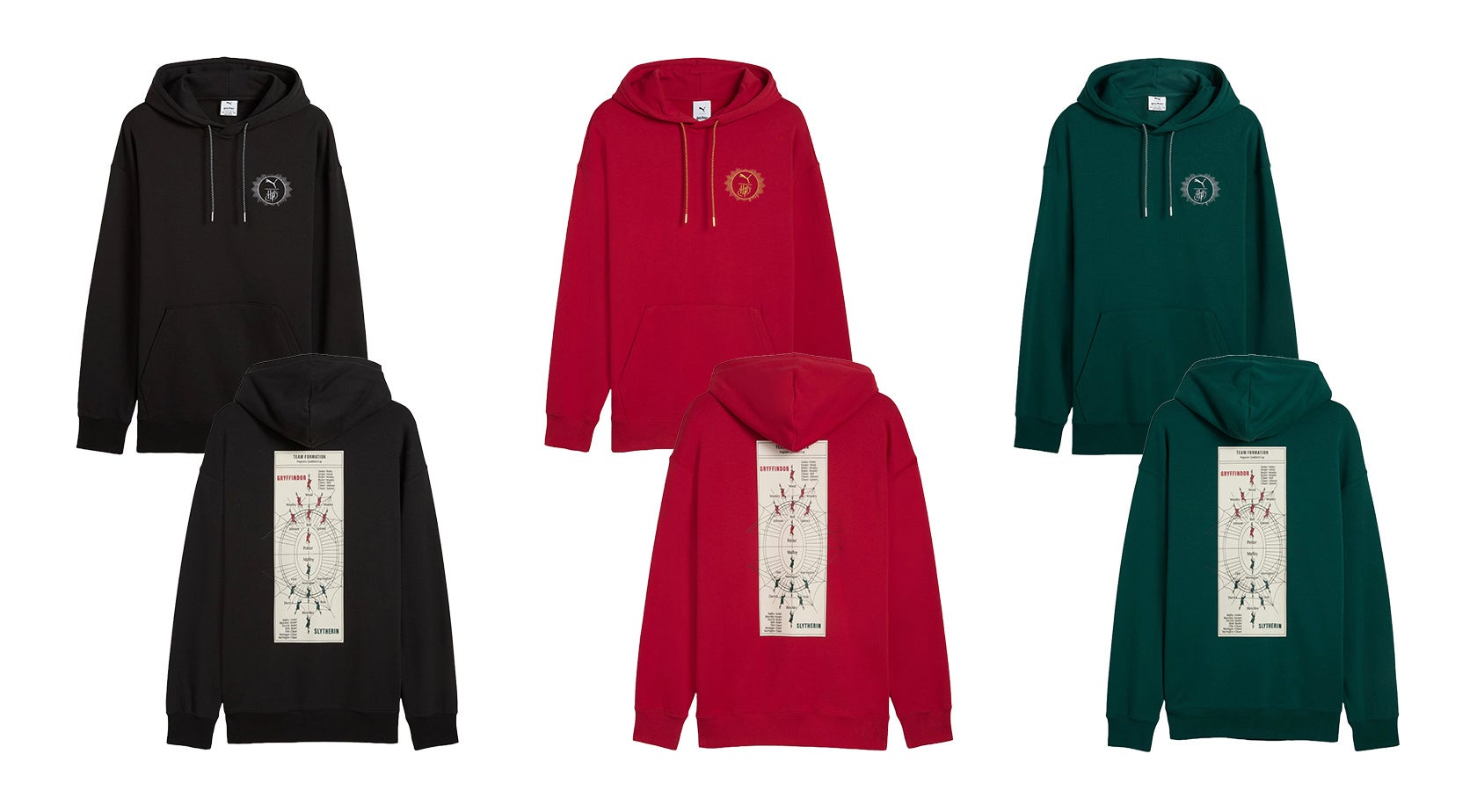 이 새로운 콜라보레이션은 해리 포터의 세계관에 등장하는 가상의 스포츠 "퀴디치"와 축구를 매쉬업한 디자인을 바탕으로 그리핀도르와 슬리데린의 팀 유니폼을 클래식한 스트리트웨어와 테라스 스타일의 미학으로 재해석했어요.