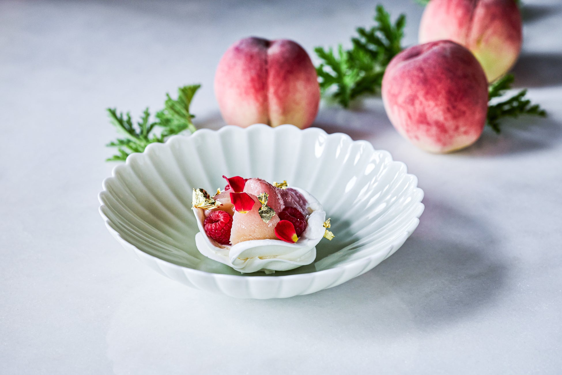 로비 라운지에서는 여름의 미각을 제대로 느낄 수 있도록 관동 근교에서 공수한 제철 백도(白桃)로 만든 애피타이저와 디저트를 준비했습니다. 시기별로 다른 품종을 사용해 각기 다른 단맛, 향, 과육의 식감을 살린 요리를 선보이며, 호텔 스타일로 완성한 ‘더 리츠 스플리츠’ 칵테일과의 페어링도 즐길 수 있습니다.
