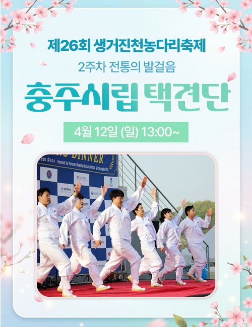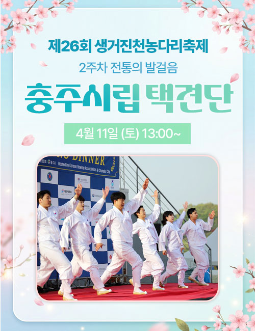 - 13:00 충주시립 택견단 · 광장무대 · 전통 택견 무예 공연